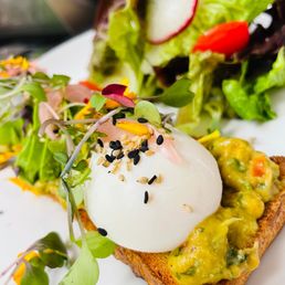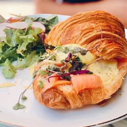 Quick seating on a Friday morning. Ordered upfront at the counter before sitting down wherever. The salmon benedict was amazing. The egg was served on top of a crispy flattened croissant. The crab benedict wasn't too bad either. It had avocado bits mixed in and was creamy. Couldn't taste much crab though.
